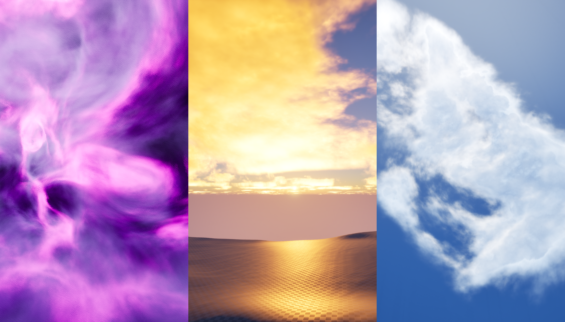 Raymarched clouds shader created in Unreal. 90% of the shader was written in HLSL using cutom nodes. It allows user to create variety of clouds/fogs both stylzied and realistic. It is a surface shader applied on a box. It can be used as a small local volume, cloud layer or a large volume covering whole levels.